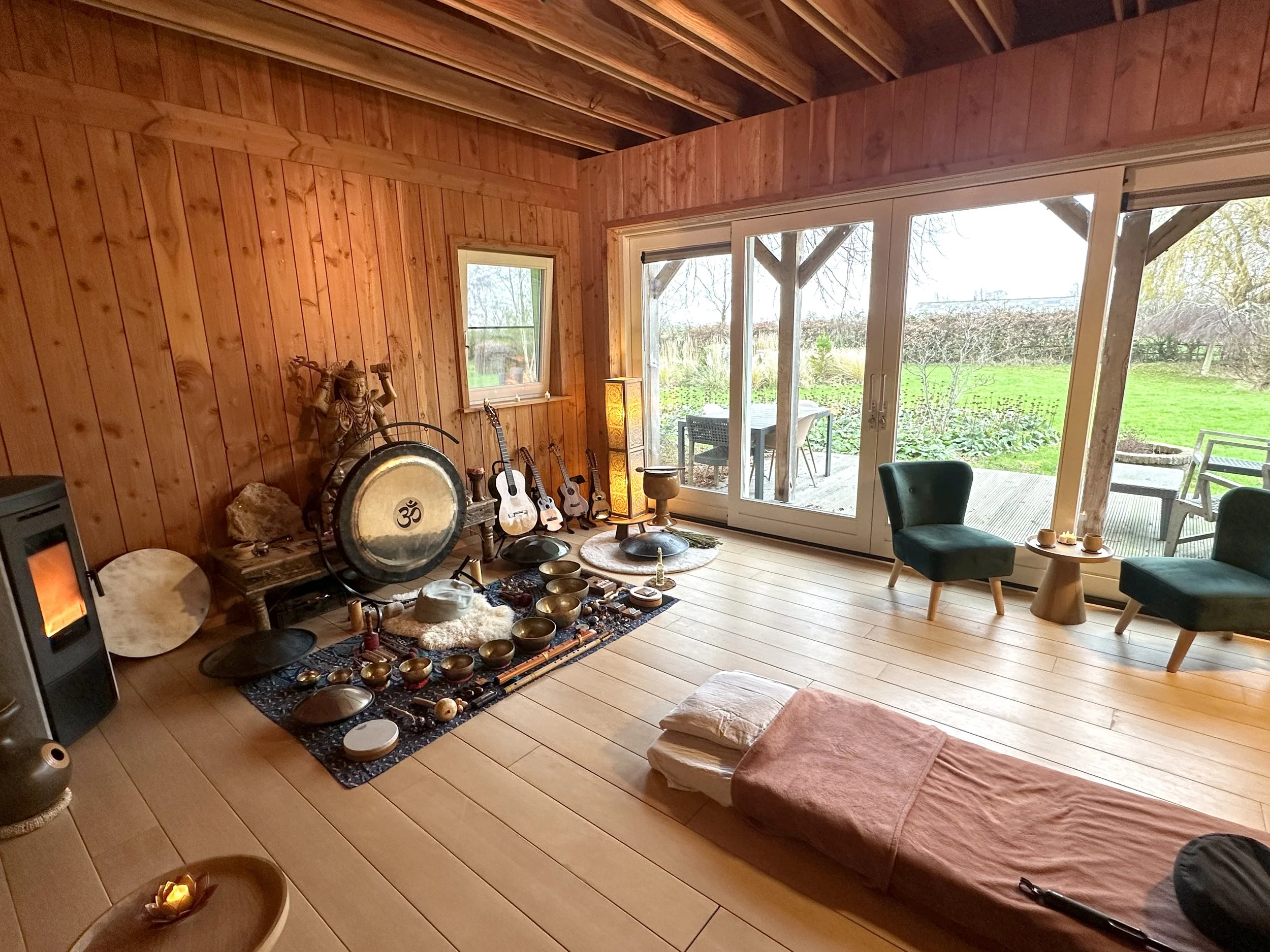 Tijdens de sessie maak ik graag rustige live muziek voor je, dat dieper ervaren zal worden dan normaal. Ik bespeel meerdere akoestische instrumenten die zich perfect lenen voor deze setting. Met o.a. een gong en een set klankschalen kan ik je meenemen op een ontspannende klankreis.